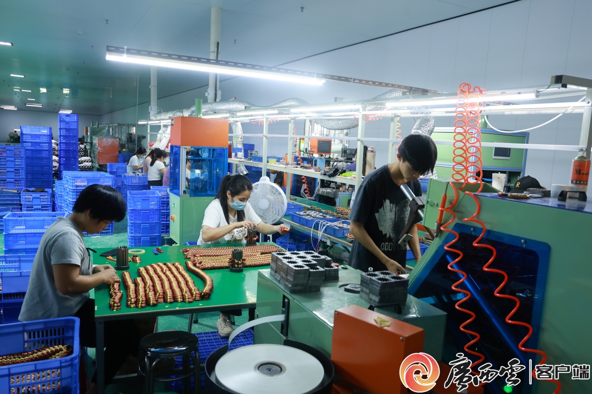 1月15日,在广西东兴产业园区,东兴市亿鑫电器制造有限公司崭新的厂房里,传送带匀速移动,两侧工人熟练地连接内部引线、安装接线年拿地到建成投产,仅用约一年,跑出了项目建设‘加速度’,提前完成目标。”该公司CEO陈钦国说,目前已接到大量来自东南亚、非洲等地的订单。为持续拓展东南亚市场,公司计划在园区内再建设一座占地20多亩的成品加工厂。