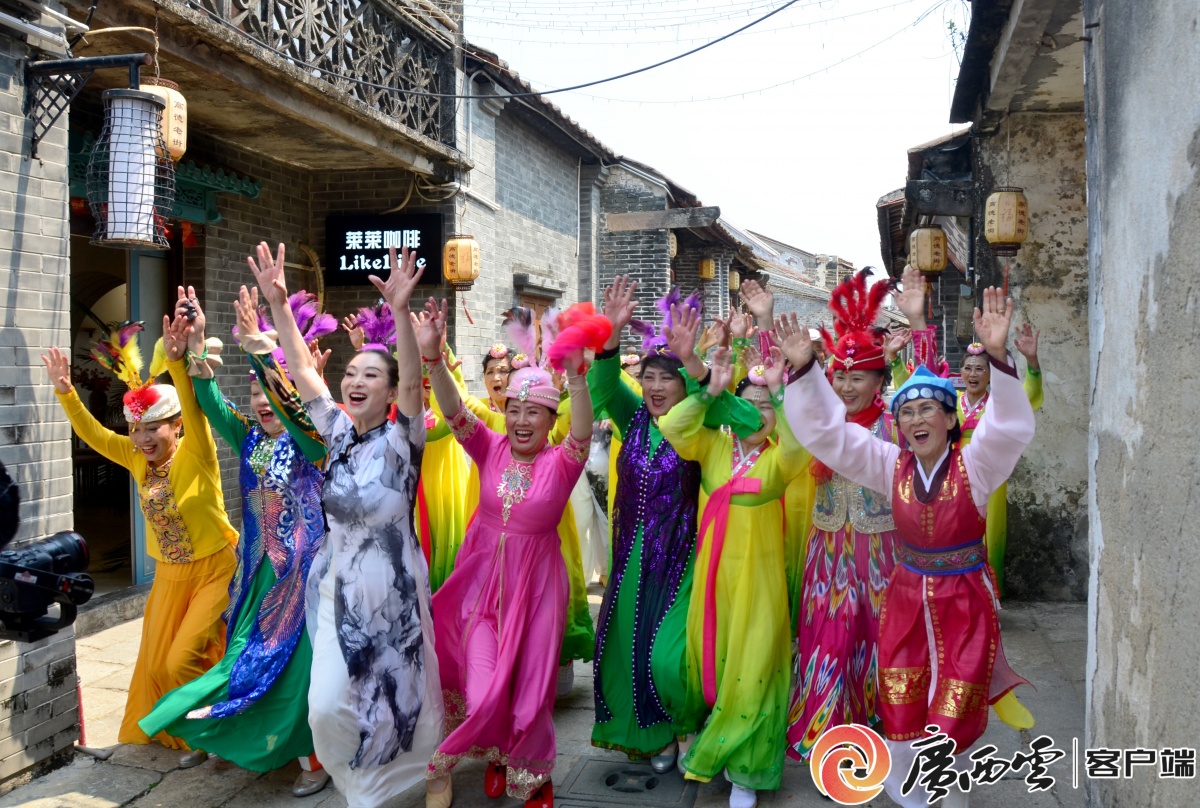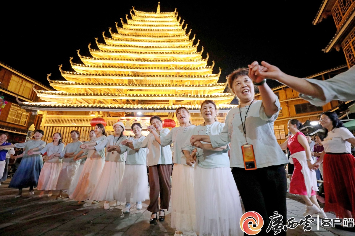 在三江侗族自治县林溪镇程阳八寨景区,各地老年游客体验侗乡歌舞风情。龚普康 摄