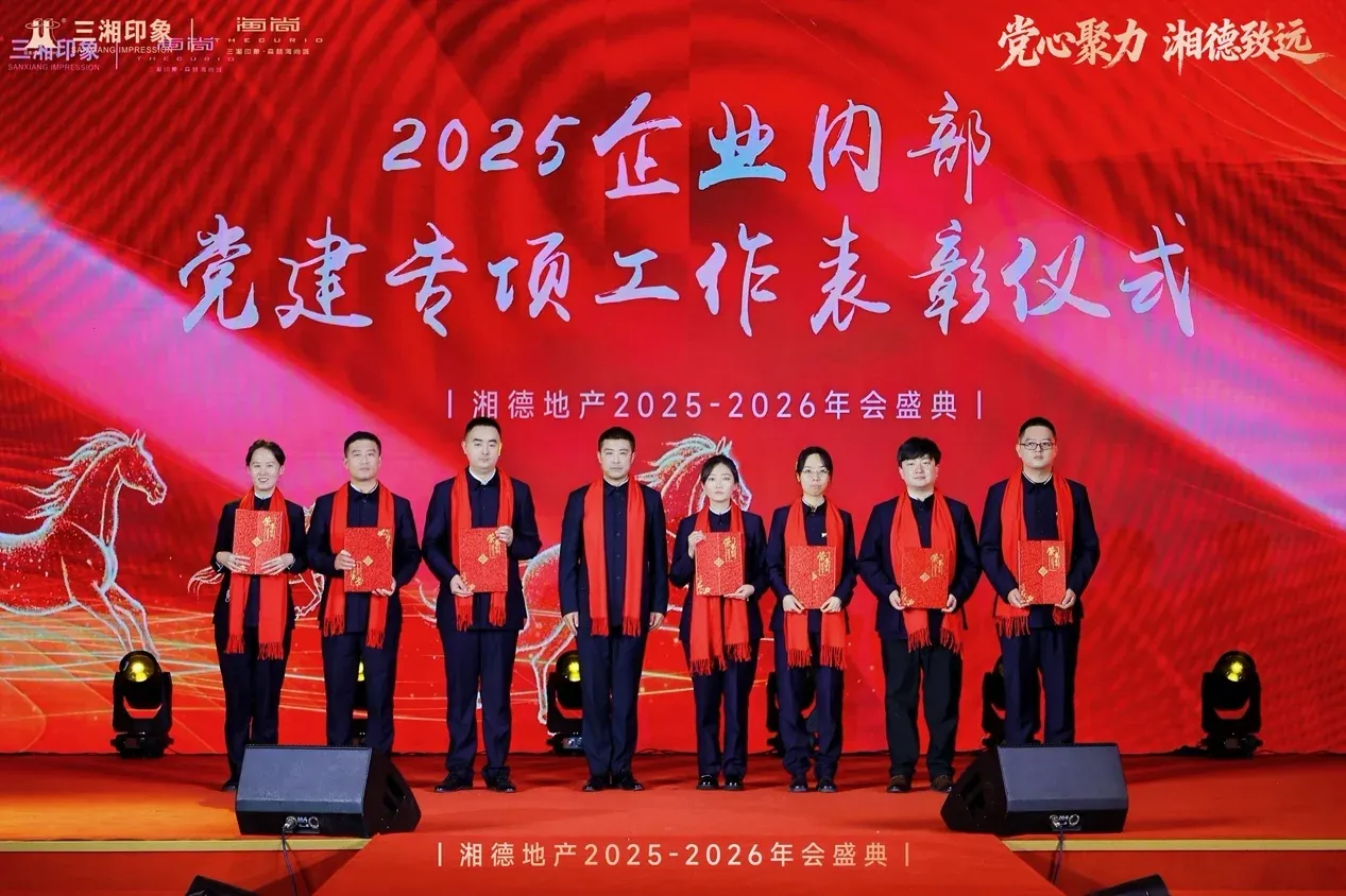岁首聚势,征程新启。在房地产行业迈向高水平发展的关键阶段,湘德地产于2026年1月8日成功举办“聚力拓新路,深耕稳基石”年终述职暨“党心聚力,湘德致远”年度盛典。大会全面复盘了过去一年以党建为引领、以品质为根基、以业绩为标杆的奋斗历程,并对未来区域深耕、行业赋能与美好生活筑造进行了战略展望。全体员工、合作伙伴及媒体嘉宾齐聚一堂,共同回顾红色引领下的奋进足迹,绘制党业深层次地融合的发展蓝图。